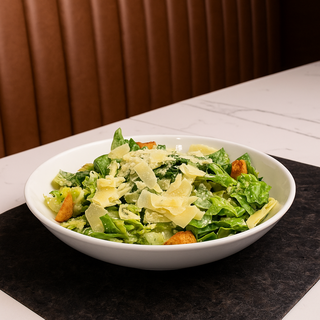 chipotle caesar dressing, crisp romaine, togarashi croutons, fresh shaved parmesan