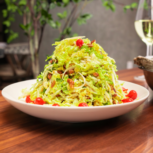 napa cabbage, candied pecans, ramen crunch, peruvian teardrop peppers, apple cider vinaigrette