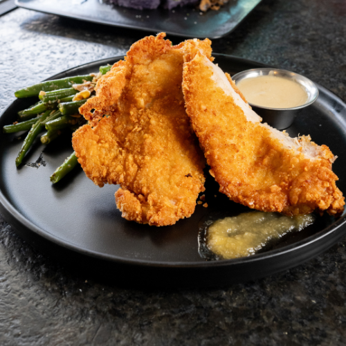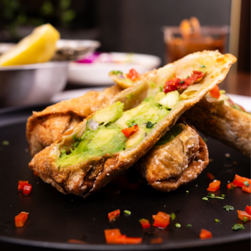 beer battered, habanero onions, asian slaw, avocado crema, mango habanero pico, ponzu
