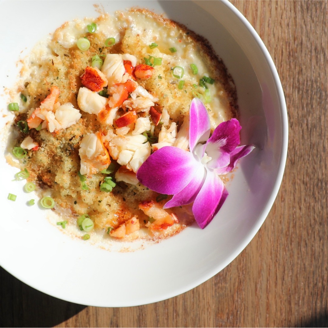 white cheddar, brie, parmesan, ditalini, lemon herb crust