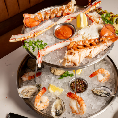 king crab, lobster tail, shrimp cocktail, east & west coast oysters